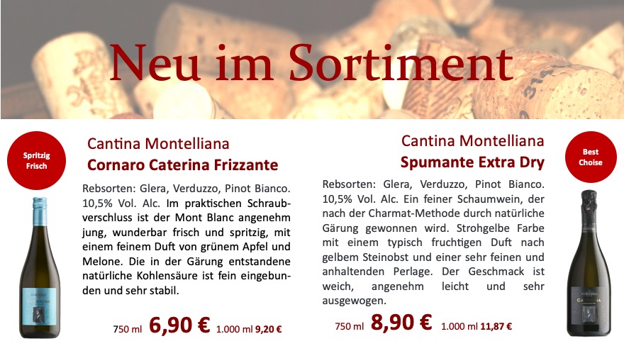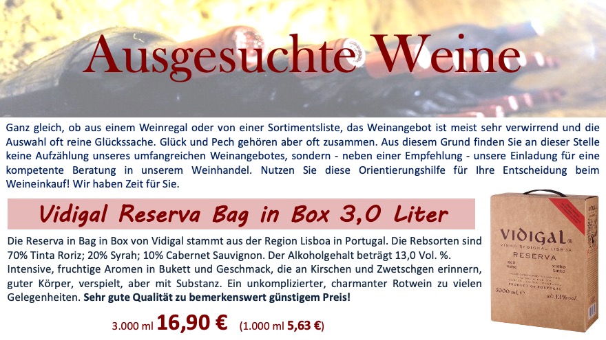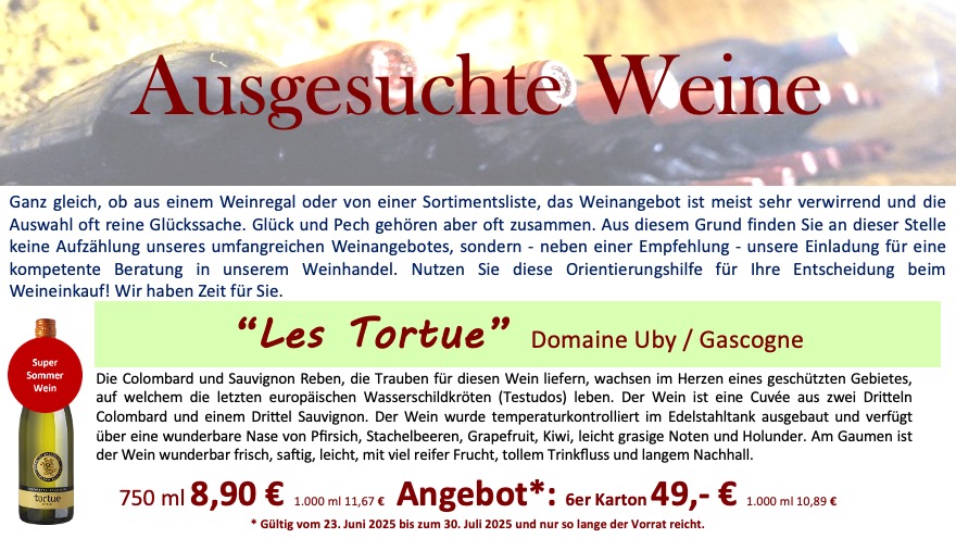 Wir freuen uns, wenn Sie Interesse an unserem Angebot finden. Bitte besuchen Sie uns in unserem Weinhandel. Wir werden Sie bei Ihrem Einkauf persönlich beraten und bedienen.