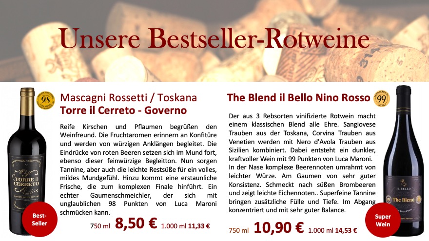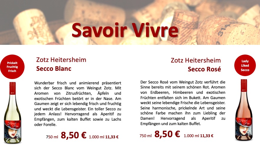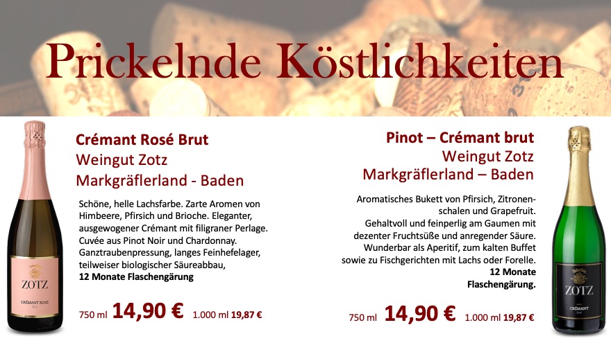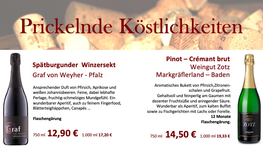 Ausgesuchte Weine und Spezialitäten zum Wein